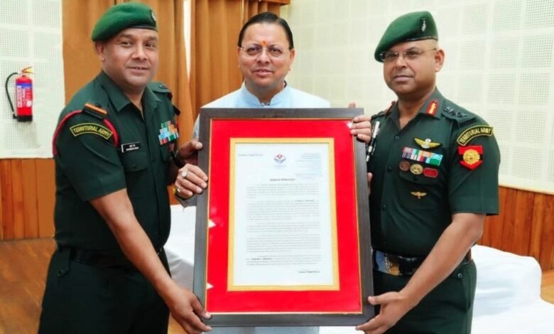 देहरादून127 इन्फैंट्री बटालियन टेरिटोरियल आर्मी (इकोलॉजिकल), गढ़वाल राइफल्स को वर्ष 2025–26 हेतु उत्तराखंड सरकार द्वारा मुख्यमंत्री प्रशंसा पुरस्कार से सम्मानित किया गया है।