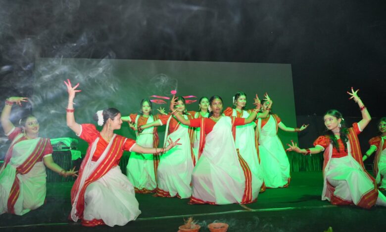 इस अवसर पर पर विश्वविद्यालय के माननीय प्रेसिडेंट के सलाहकार प्रो. (डाॅ.) प्रथप्पन के. पिल्लई ने कहा कि नवरंग डांडिया जैसे आयोजन विविधता में एकता का जीवंत उदाहरण प्रस्तुत करते हैं। उन्होंने कहा कि ऐसे सांस्कृतिक पर्व विद्यार्थियों में ऊर्जा, उत्साह और सामाजिक जुड़ाव की भावना को प्रबल करते हैं। उन्होंनेे आशा व्यक्त की कि यह उत्सव छात्र-छात्राओं को भारतीय परंपराओं और संस्कारों से जोड़ने के साथ-साथ सामूहिकता और सहयोग की सीख भी दे रहा है।श्री गुरु राम राय विश्वविद्यालय के छात्र-छात्राओं ने धनुची और डांडिया नृत्य से कार्यक्रम स्थल को जीवंत और भक्तिमय बना दिया। धनुची नृत्य, जो दुर्गा पूजा का महत्वपूर्ण अंग है, पारंपरिक बंगाली शक्ति नृत्य के रूप में प्रस्तुत किया गया। इसके बाद गरबा और डांडिया की रंगीन थिरकन ने पांडाल में उत्सव का माहौल बना दिया। हाई वोल्टेज डीजे बीट्स पर फैकल्टी और छात्र-छात्राओं ने धूमधाम से नृत्य किया। डांडिया गीतों की गूँज ने रात भर उत्साहित दर्शकों को झूमते रखा। मंच संचालन शुभम ने कुशलता से किया। बंगाली, गुजराती और नवरात्रि के पारंपरिक व्यंजनों के साथ पहाड़ी स्वाद ने भी आयोजन में चार चांद लगाए। नवरंग डांडिया में हिस्सा लेने के लिए छात्र-छात्राओं में जबरदस्त उत्साह देखा गया। आधुनिक और पारंपरिक परिधानों में सजी युवाओं की शैली और कदमताल के बीच मैदान तालियों से गूंज उठा।