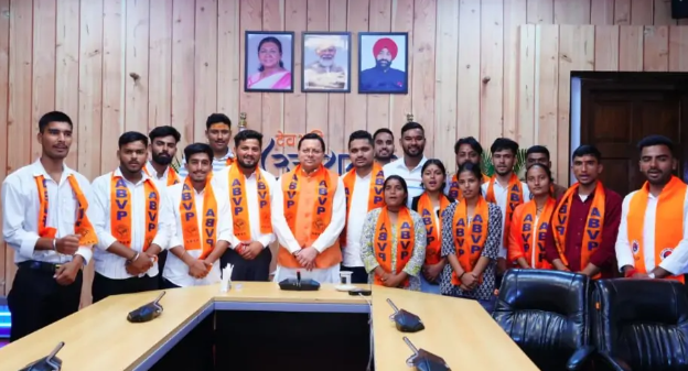 ABVP विजयी प्रत्याशियों ने मुख्यमंत्री धामी से की मुलाकात