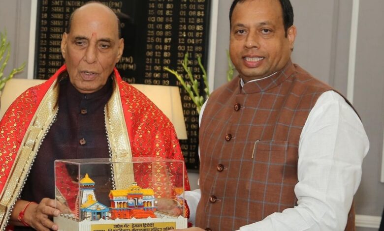 देहरादून: श्री बदरीनाथ – केदारनाथ मंदिर समिति ( बीकेटीसी) अध्यक्ष हेमंत द्विवेदी ने बीते सोमवार शाम को देश के रक्षा मंत्री, भाजपा पूर्व राष्ट्रीय अध्यक्ष राजनाथ सिंह से दिल्ली स्थित आवास में शिष्टाचार भेंट की तथा रक्षा मंत्री को श्री बदरीनाथ तथा श्री केदारनाथ धाम का प्रसाद, अंगवस्त्र, स्मृति चिह्न भेंट किया।