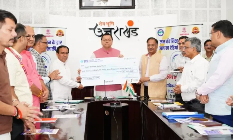 उत्तराखंड मुक्त विश्वविद्यालय के कुलपति प्रो. नवीन चंद्र लोहनी ने विश्वविद्यालय की विभिन्न गतिविधियों से अवगत कराया और आपदा राहत के लिए मुख्यमंत्री राहत कोष हेतु विश्वविद्यसलय की ओर से 01 लाख 49 हजार का चेक मुख्यमंत्री को प्रदान किया।
