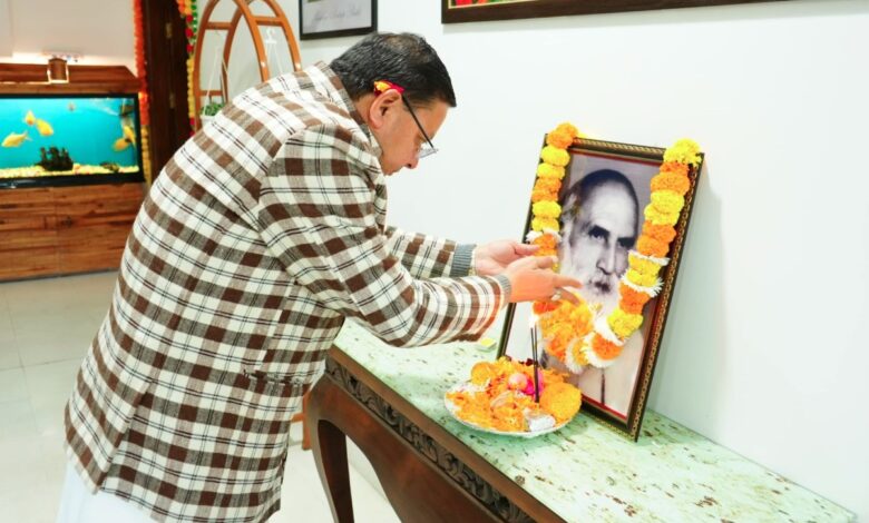 मुख्यमंत्री धामी ने इंद्रमणि बडोनी की जयंती पर उनके चित्र पर पुष्प अर्पित कर दी श्रद्धांजलि