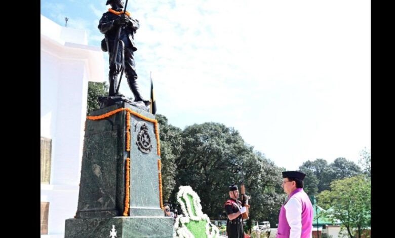 लैंसडाउन: मुख्यमंत्री पुष्कर सिंह धामी ने रविवार को लैंसडाउन स्थित गढ़वाल राइफल्स रेजिमेंटल वॉर मेमोरियल पहुंचकर शहीद जवानों को श्रद्धांजलि दी। मुख्यमंत्री ने वॉर मेमोरियल पर पुष्पचक्र अर्पित कर माँ भारती की सेवा में सर्वस्व न्योछावर करने वाले अमर सपूतों को नमन किया।मुख्यमंत्री धामी ने कहा कि यह स्मारक वीर सपूतों के शौर्य, त्याग और मातृभूमि के प्रति उनके अडिग प्रेम का जीवंत प्रतीक है। उन्होंने कहा कि गढ़वाल राइफल्स के जांबाज सैनिकों ने देश की रक्षा के लिए जो बलिदान दिए हैं, वे सदैव प्रेरणा स्रोत रहेंगे।