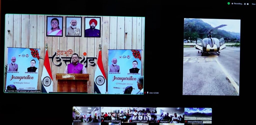 देहरादून: मुख्यमंत्री पुष्कर सिंह धामी ने क्षेत्रीय संपर्क योजना (उड़ान योजना) के तहत पिथौरागढ़-मुनस्यारी-पिथौरागढ़ और हल्द्वानी-अल्मोड़ा-हल्द्वानी हवाई सेवाओं का उद्घाटन किया। इस अवसर पर मुख्यमंत्री ने कहा कि इन हवाई सेवाओं के शुभारंभ से राज्य के दूरस्थ क्षेत्रों में आम नागरिकों की आवाजाही सुगम होगी और पर्यटन को भी नई गति मिलेगी।मुख्यमंत्री ने बताया कि प्रधानमंत्री नरेंद्र मोदी के कुशल नेतृत्व में प्रदेश में कनेक्टिविटी के क्षेत्र में निरंतर सुधार किए जा रहे हैं। राज्य में कुल 18 हेलीपोर्ट्स से हेली सेवाओं के संचालन की योजना है, जिनमें से अब तक 12 हेलीपोर्ट्स पर सेवाएँ सफलतापूर्वक प्रारंभ की जा चुकी हैं।