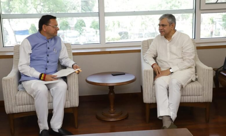 केंद्रीय मंत्री अश्विनी वैष्णव ने मुख्यमंत्री पुष्कर सिंह धामी द्वारा प्रस्तुत प्रस्तावों पर सकारात्मक कार्यवाही का आश्वासन दिया