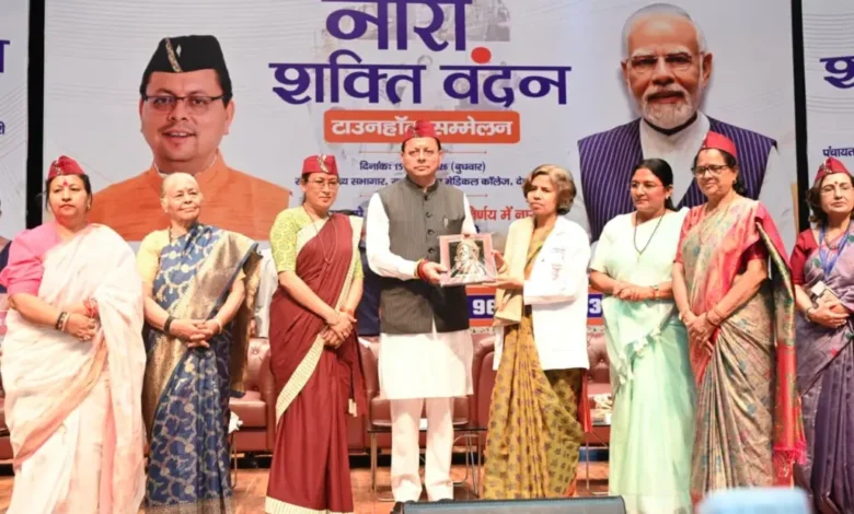 देहरादून: राजकीय दून मेडिकल कॉलेज में नारी शक्ति वंदन टाउन हॉल सम्मेलन का आयोजन किया गया। इस अवसर पर मुख्यमंत्री पुष्कर सिंह धामी ने प्रधानमंत्री के दूरदर्शी नेतृत्व की सराहना करते हुए नारी शक्ति वंदन अधिनियम को देश की मातृशक्ति के सशक्तिकरण की दिशा में एक ऐतिहासिक कदम बताया।