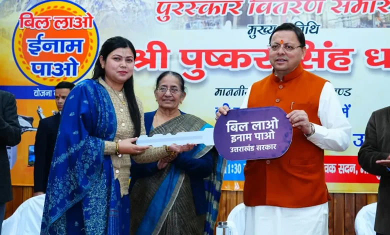 देहरादून: मुख्यमंत्री पुष्कर सिंह धामी ने मंगलवार को ’बिल लाओ-इनाम पाओ’’ योजना के विजेताओं को पुरस्कार वितरित किए।